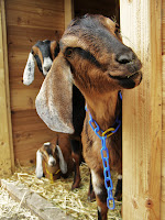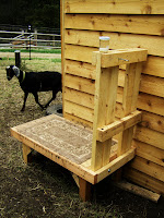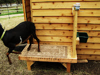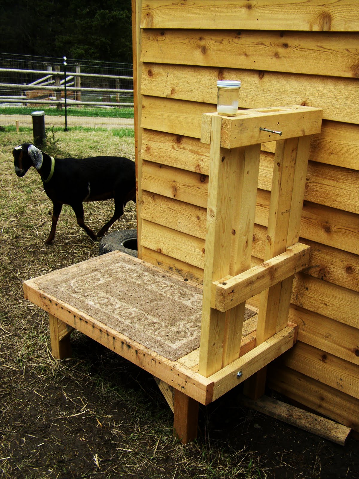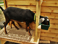 In the photo above you can see the milking stand that Ed built me, gotta love that guy, to the right of the shelter. Milking Stands are useful for keeping fidgety does in check by locking their heads into a type of, for lack of a better description, goat guillotine.