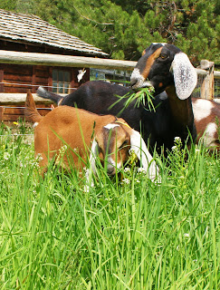 Here's the crew enjoying their new and improved pasture! I worked really hard today to fence off a large area of prime riverfront property for these lucky goats today. The thing is....we REALLY don't want to have to mow it.