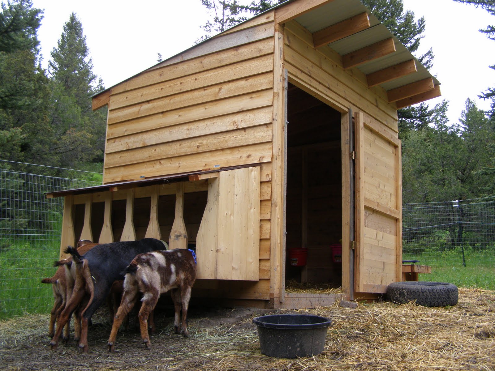 Look what Ed built us! It's a keyhole hayfeeder for the goats!