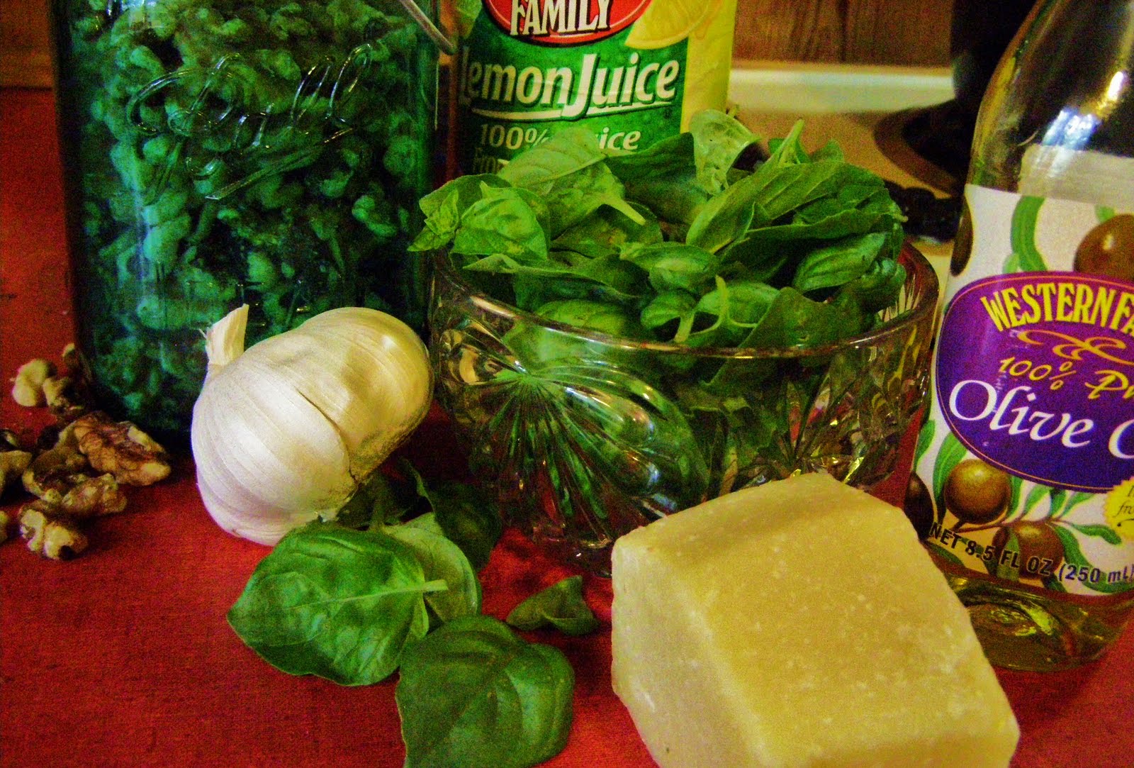- 1/8 cup nuts (pine nuts are normal, but Ed pretends he hates them so I used walnuts)